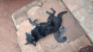 Kat: officiële naam is poes, wij hebben hem de naam Sjonnie gegeven. Hoofdtaak: op muizen en ratten jagen. Hoofdbezigheid: slapen en zeuren om eten. Sjonnie begrijpt alleen wat zijn taak is als je hem muizen of ratten voert, hij werkt nog steeds aan zijn jaag talent.
