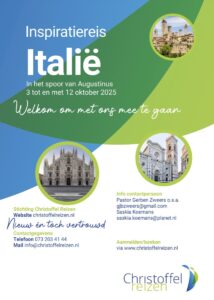 Ga mee op een inspirerende reis vol cultuur, inspiratie en religie! We laten ons op deze reis inspireren door het leven van Augustinus. We vertrekken op vrijdag 3 oktober comfortabel per nachtbus vanuit Geldermalsen, via Arnhem naar Milaan, waar we de volgende dag aankomen. We verblijven er twee nachten en hebben zo voldoende tijd om de stad te verkennen, te genieten van prachtige bezienswaardigheden en de mis te vieren in de Kathedraal. Vanuit Milaan reizen we via het historische Pavia naar het schilderachtige San Gimignano. Daar verblijven we drie nachten in het klooster van de augustijnen. Vanuit San Gimignano bezoeken we het indrukwekkende Siena. Onze laatste stop is Florence, waar we twee nachten verblijven. Florence is de stad van kunst en geschiedenis. Hier genieten we van de bezienswaardigheden in de stad en hebben onder andere een viering in de Duomo. Op zaterdag 11 oktober aan het eind van de dag keren we huiswaarts per comfortabele nachtbus, waar we in de loop van zondagmiddag 12 oktober arriveren.
