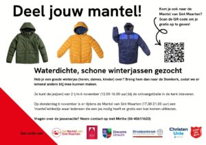 Dit jaar wordt weer aandacht gevraagd voor de winterjasseninzamelingsactie met als doel tijdens de Mantel van Sint Maarten warme winterjassen uit te delen aan mensen die er een nodig hebben.