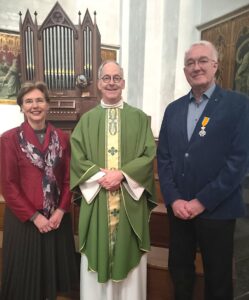 Foto's: (c) Wouter van Belle: Foto 1: Locoburgemeester en wethouder Eva Oosters. Foto 2: Wouter van Belle met pastoor H. Boogers en Sonja Roskamp. Uitgelichte foto: onderscheiding Wouter van Belle.