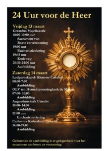 - Zaterdag 14 maart, van 7.00 uur tot 10.00 uur. Aanbidding in O.L.V. ten Hemelopneming de Meern.