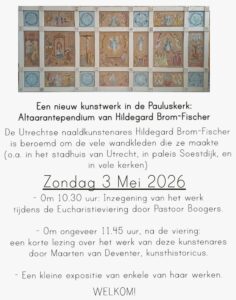 We vragen uw speciale aandacht voor de inzegening van een kunstwerk van Hildegard Brom-Fischer:
